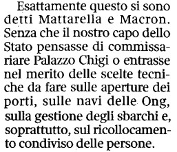 Il quirinalista del Corriere della Sera Marzio Breda, raccogliendo -credo- notizie di buona fonte in un palazzo che conosce e frequenta come casa sua, ha scritto che nel suo intervento telefonico Mattarella non ha pensato di “commissionare Palazzo Chigi” o di “entrare nel merito delle scelte tecniche da fare sulle aperture dei porti, sulle navi delle ong, sulla gestione degli sbarchi e, soprattutto, sul ricollocamento condiviso delle persone”: tutte cose da definire nelle sedi proprie di governo, a livello interno e comunitario. Ma il presidente del Senato Ignazio La Russa, seconda carica dello Stato, muovendosi volente o nolente come un elefante in una cristalleria, ha voluto far dire a Mattarella quello che non ha detto, cioè di avere condiviso e appoggiato praticamente l’operato della Meloni e di Salvini. Benedett’uomo, perché qualche volta non si trattiene?