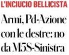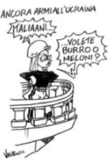 In sintonia con la campagna di Conte il giornale che lo affianca di più -naturalmente Il Fatto Quotidiano- ha gridato all’”inciucio bellicista” mettendo il Pd e il cosiddetto terzo polo “con le destre” e sistemando Giorgia Meloni, in una vignetta del solito Vauro, su un balcone semicircolare in elmetto, camicia nera e pantaloni di mussoliniana memoria per invitare gli italiani a scegliere fra lei, cioè la guerra, e il burro.