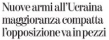 Per La Stampa, infine, almeno per oggi, più ancora dell’”inciucio bellicista” lamentato dal Fatto Quotidiano, o delle “moine” avvertite dal Giornale, contano come spettacolo alla Camera sulle nuove armi all’Ucraina, probabilmente anche i missili Aspide, la “maggiorana compatta” nella votazione della sua mozione e “l’opposizione in pezzi”. In effetti, e in fondo, è accaduto anche questo nell’aula di Montecitorio.
