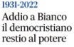 Quando infine il partito di Occhetto e D’Alema reclamò lo scioglimento anticipato delle Camere, nel 1994, sapendo che lo avrebbe ottenuto dal presidente della Repubblica Oscar Luigi Scalfaro, giunse al Quirinale una formale richiesta di udienza da parte di Bianco. Che era contrario perché convinto che il governo Ciampi avesse ancora una maggioranza con la quale portare avanti la legislatura. Scalfaro negò l’udienza, deciso ormai a procedere alle elezioni anticipate -che peraltro il Pds-ex Pci avrebbe clamorosamente perduto a vantaggio del centrodestra di Berlusconi- sentendo solo i presidenti delle Camere, per obbligo costituzionale, non anche i gruppi parlamentari e rispettivi partiti.