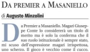A Napoli, dove la buonanima di Eduardo De Filippo ha fatto scuola con i diminuitivi dei nomi dei protagonisti e attori delle sue commedie, Giuseppe Conte si è sentito chiamare in piazza Peppiniello. Non ho capito bene se da una percettrice del reddito di cittadinanza, da una parente o da una ex esterna o precaria dell’Inps regolarizzata grazie ad un provvedimento risalente al suo ultimo governo.