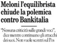 Ieri è stato il caso della guerra fra Bankitalia e governo, per fortuna chiusa prontamente dalla presidente del Consiglio in persona, Giorgia Meloni, che non ha avvertito critiche dell’ex istituto di emissione sulle “grandi voci” della manovra finanziaria all’esame del Parlamento ed ha perciò zittito anche colleghi di partito, oltre che di governo, insorti per resistere o contrattaccare. La premier si è guadagnata per questo oggi in prima pagina la definizione di “equilibrista” dal Foglio, che pure ieri era stato l’unico a raccontare e spiegare nella sua cronaca che il funzionario di Bankitalia ascoltato dalle commissioni parlamentari aveva apprezzato nel suo complesso la legge di bilancio, pur criticandone alcuni aspetti.