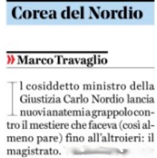 Se n’è accorto invece sul Fatto Quotidiano Marco Travaglio dando a Nordio, nel suo editoriale, del “cosiddetto ministro della Giustizia” abbandonatosi a “nuovi anatemi a grappolo contro il mestiere che faceva (così almeno pare) fino all’altro ieri: il magistrato”.