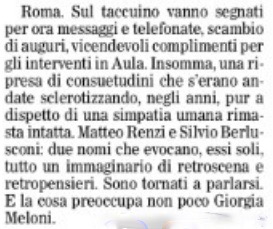 Chissà se dei rapporti empatici fra Silvio Berlusconi e Matteo Renzi di cui si occupa oggi Il Foglio sullo sfondo delle preoccupazioni che avrebbero già procurato alla presidente del Consiglio Giorgia Meloni, fa parte anche qualche telefonata o messaggino telematico di comprensione o solidarietà del senatore di Scandicci per le reazioni alla promessa fatta dal Cavaliere ai giocatori del Monza di premiarli con un “pullman di troie” in caso di vittoria sulla Juventus e/o sul Milan.
