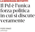 A commento dell’ultima riunione dell’assemblea nazionale uscente e insieme “costituente”, rispettivamente, del vecchio e “nuovo” Pd, secondo il curioso e lungo percorso congressuale voluto al Nazareno, un editoriale di Domani affidato ieri a Piero Ignazi, politologo di tutto rispetto, ha certificato nello stesso titolo che “Il Pd è l’unica forza politica in cui si discute veramente”.