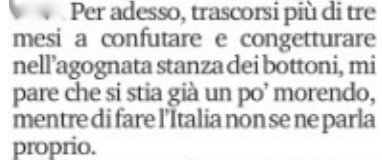 Eppure, diversamente dal titolista del suo giornale, o dal vignettista Stefano Rolli sul Secolo XIX di comune proprietà, che ostenta oggi la fiamma del partito della Meloni, il direttore Massimo Giannini in persona si è immedesimato in un “fratello d’Italia”, diciamo così, ed ha scritto testualmente nel suo editoriale: “Per adesso, trascorsi più di tre mesi a confutare e congetturare nell’agognata stanza dei bottoni, mi pare che si stia già un pò morendo, mentre di fare l’Italia non se ne parla proprio”. Di farla, cioè, al modo promesso dalla Meloni in campagna elettorale o attribuitole dagli avversari che la vedono come una nipote o pronipote virtuale di Benito Mussolini, smaniosa di arrivare sempre “ai ferri corti” con gli altri, come ha titolato Repubblica, nonostante nella lettera al Corriere della Sera, la premier abbia richiamato anche i suoi fratelli e sorelle d’Italia alla moderazione.