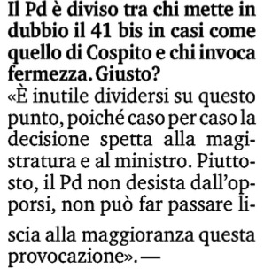 Intervistata qualche giorno fa dalla Stampa, anche l’ex presidente ed ex ministra del Pd Rosy Bindi ha ammonito i suoi amici che “è inutile dividersi su questo punto, poiché caso per caso la decisione spetta alla magistratura e al ministro”.