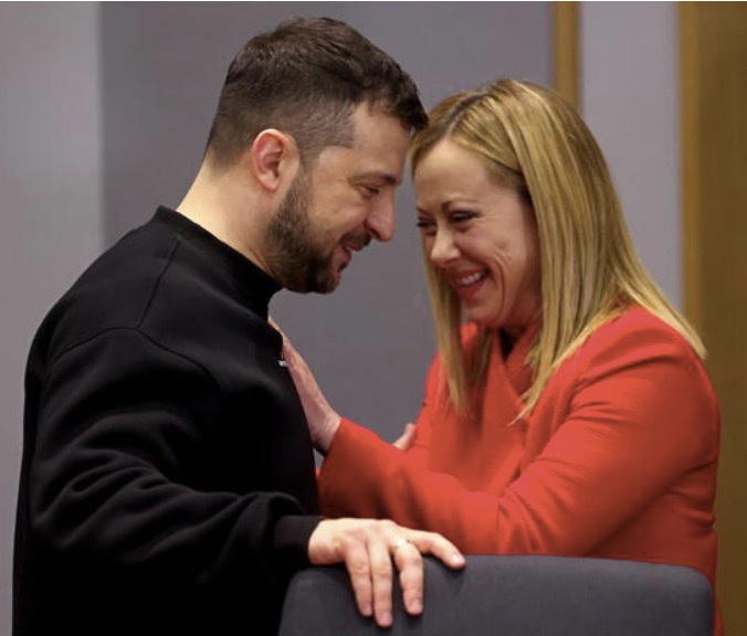 Poiché le provocazioni sono come le ciliegie, una tirando l’altra, la Meloni si è procurata anche la versione pur forzatissima del Fatto Quotidiano di un incontro “bilaterale” con Zelensky programmato e “negato”. Versione forzatissima, dicevo, anzi falsa, perché l’incontro a due si è svolto, e non solo per darsi la mano e scambiarsi carinerie, sia pure in appendice, voluta espressamente da Zelensky, a quello con i rappresentanti di altri paesi, in gruppi preselezionati dall’organizzazione del Consiglio Straordinario.