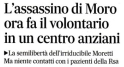 Ebbene, Mario Moretti, 77 anni compiuti, il capo delle brigate rosse che guidò personalmente nel 1978 l’operazione del sequestro e dell’assassinio di Aldo Moro, a distanza di 45 anni da quell’impresa e di 42 anni dalla cattura, con ben sei ergastoli da scontare per la sua sanguinosa attività terroristica, vive già dal 1997 in regime di semilibertà. Che è evoluto da allora in modo tale che, pur dovendo rientrare nel carcere di Verziano alle ore 22 e uscirne la mattina dopo, egli ha potuto fissare domicilio in una casa di Brescia, svolgere azione di volontariato e spostarsi in auto sino a Milano.