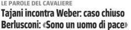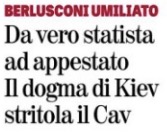 L’ancòra Giornale della famiglia Berlusconi dà oggi per “chiuso” l’incidente dopo un incontro di Antonio Tajani, ministro degli Esteri e vice del presidente di Forza Italia, che tuttavia non è riuscito a fare revocare la rinuncia al summit di Napoli. Del resto, l’insospettabile Verità di Maurizio Belpietro, di area orgogliosamente di centrodestra, oggi titola su un “Berlusconi umiliato”, passato “da vero statista ad appestato”, anzi “stritolato”, dal “dogma” dell’appoggio a Kiev.