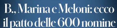 “Sulle nomine è scontro tra la premier e Salvini”, ha annunciato Repubblica nel titolo di apertura in prima pagina, pur relegando la notizia nel sommario, come si dice in gergo tecnico. Ad amplificarla ha provveduto il solito Fatto Quotidiano attribuendo vistosamente, sempre in prima pagina, ad una trattativa fra la Meloni e i Berlusconi -Silvio padre e Marina figlia- “il patto delle 600 nomine” in arrivo per il cosiddetto sottogoverno. Salvini quindi sarebbe escluso, o sacrificato, per quanto gli venga attribuito un boccone non secondario come quello di Leonardo, che produce di tutto nel settore della difesa, sicurezza e dintorni.