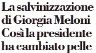 Opposta è la rappresentazione di altri giornali dei rapporti fra la Meloni e Salvini. “Ponte sullo Stretto, passa la linea Salvini: rinasce la società”, ha annunciato La Stampa. Non parliamo poi delle foto nelle quali Salvini si è fatto riprendere con i presidenti delle regioni Calabria e Sicilia davanti al plastico del ponte sullo stretto, appunto, di Messina mentre Berlusconi cercava di rivendicare in altre sedi il merito del progetto che sembra arrivato alla realizzazione. Ma “sembra”, ripeto, perché quelli di Repubblica ed altri hanno sottolineato che il via libero dato dal Consiglio dei Ministri ha la formula per niente liberatoria del “salvo intese”.