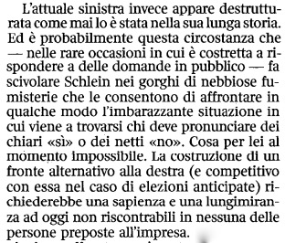 Ma quando mai? ha detto in tv Italo Bocchino, già fintano, all’idea che ci fosse stato lo zampino del partito della fiamma nell’iniziativa di Buontempo. E lì a ricordare l’interesse, se non le simpatie guadagnatesi da Craxi a destra col “socialismo tricolore” e con la schiena dritta opposta al pur potente alleato americano nella famosa notte di Sigonella.