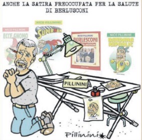 Pur preceduta ieri da Avvenire con quel “Berlusconi finito in terapia intensiva”, Repubblica si è sinistramente imbizzarrita oggi a riferire o immaginare il traffico “attorno al capezzale” di un uomo, come Berlusconi appunto, della cui morte i più preoccupati, forse persino più dei “famigliari e famigli”, come li chiama Il Fatto Quotidiano, sono però i vignettisti. La cui disperazione all’idea di perdere una fonte così preziosa del loro lavoro è stata ben rappresentata da Nico Pillinini sulla prima pagina della Gazzetta del Mezzogiorno.