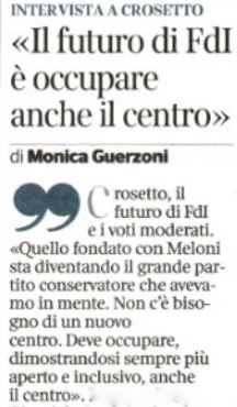 Per non riparlare del sollievo attribuito ieri immaginariamente, in una vignetta, dallo stesso Foglio a Silvio Berlusconi, che si gode dal letto dell’ospedale in terapia intensiva lo spettacolo mediatico della dissoluzione della coppia aspirante alla sua successione, va sottolineata una intervista al Corriere della Sera nella quale il ministro della Difesa Guido Crosetto ha praticamente raccomandato a distanza a Giorgia Meloni di accelerare l’evoluzione al centro della sua destra conservatrice, non più missina, e tanto meno fascista come molti ancora si ostinano a considerarla, o temerla. Al manifesto, per esempio, proprio oggi in prima pagina per riferire della visita in corso della premier italiana in Africa hanno evocato addirittura il telegramma del maresciallo Pietro Badoglio del 5 maggio 1936 a Benito Mussolini per annunciare, dopo 7 mesi di guerra, “l’ingresso delle truppe del regio esercito ad Addis Abeba, capitale dell’Etiopia”. Da qui deriverebbe il presunto e coloniale “mal d’Africa della Presidente del Consiglio”.