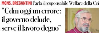 Pure lo storico Ernesto Galli della Loggia, intervistato da Libero, ha detto che ormai, e finalmente, “c’è spazio per il primo partito conservatore” in Italia. Chissà come si sarà sentito, a leggerlo, monsignor Giancarlo Maria Bregantini, “responsabile Welfare della Cei”, come l’ha presentato Il Fatto Quotidiano, dopo avere sposato in pieno la linea di sinistra di Landini. Il Consiglio dei Ministri oggi -ha detto l’arcivescovo al compiaciuto giornale di Travaglio- un errore: il governo delude, serve il lavoro degno”, non quello indegno evidentemente perseguito o proposto dalla premier pur elogiata, apprezzata e quant’altro dal Papa ogni volta che ne ha l’occasione.