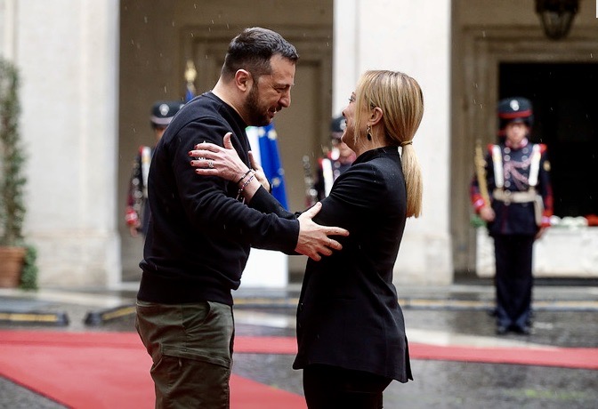 Quando qualcuno degli invitati di Bruno Vespa ha cercato di trascinare il presidente ucraino nelle beghe della politica interna italiana e, più in particolare, della sua maggioranza di governo, con lo stesso Vespa che ha chiamato in causa il vice presidente del Consiglio e leader leghista Matteo Salvini, l’ospite ha reagito ridendo o strabuzzando gli occhi. La parola di Giorgia -sempre Giorgia- gli basta e avanza per fidarsi dell’Italia e dei suoi impegni a favore dell’Ucraina aggredita dalla Russia di Putin. Da casa o dov’altro avrà seguito la puntata straordinaria, ripeto, di Porta a Porta trasmessa dalla terrazza del Vittoriano la presidente del Consiglio sarà rimasta compiaciuta, non so se quanto o più ancora dell’applauso e delle altre carinerie riservatele il giorno prima in un’ affollatissima manifestazione dal Papa, peraltro compiaciuto di vederla vestita “quasi” come lui, in bianco. Con Zelensky invece l’abito è tornato scuro.