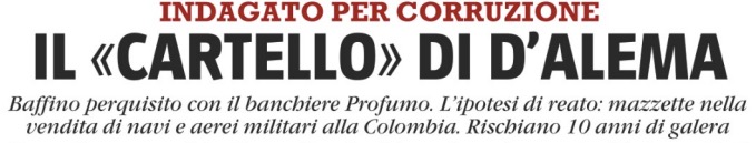 I quotidiani più acidi, prevenuti e quant’altro nei riguardi dell’ex presidente del Consiglio, l’unico esponente dell’ex Pci riuscito ad arrivare a Palazzo Chigi, sia pure per poco tempo, presiedendo due governi in meno di due anni, fra l’ottobre del 1998 e l’aprile del 2000, sono stati quelli d’area di un centrodestra che pure sventola di solito la bandiera del garantismo. “Indagato per corruzione- Il “cartello” di D’Alema”, ha sparato in rosso e nero su tutta la prima pagina Il Giornale ancora in parte della famiglia Berlusconi. “I sacerdoti della tripla morale” è il titolo dell’editoriale di Augusto Minzolini.