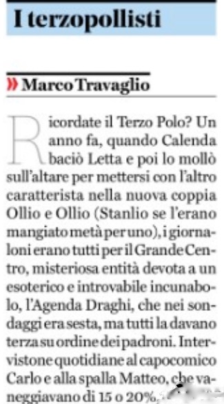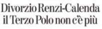 Ma la notizia principale del giorno, anche rispetto alle rumorose polemiche sul colore politicamente nero della strage del 2 agosto 1980 nella stazione di Bologna, o a quelle sul reddito di cittadinanza tolto ai tanti cosiddetti “divanisti” difesi dal ritrovato “avvocato del popolo” Giuseppe Conte, è la dissoluzione di quello che un po’ tutti ci siamo abituati a chiamare “terzo polo” e anch’io -vi confesso pure questo- ho votato nelle elezioni politiche dell’anno scorso. Una dissoluzione compiuta secondo La Stampa col suo titolo sul “divorzio Renzi-Calenda”, o prossima a compiersi secondo Il Giornale. Che aspetta ancora il “passo” finale, forse per scaramanzia, desiderandolo forse più di tutti.