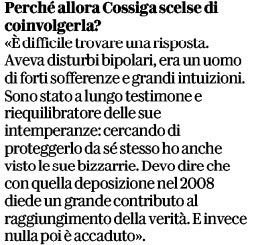 Di Cossiga, pur riconoscendogli “un grande contributo al raggiungimento della verità” con quella deposizione, Amato ha detto testualmente: “Aveva disturbi bipolari. Era un uomo di forti sofferenze e grandi intuizioni. Sono stato a lungo testimone e riequilibratore delle sue intemperanze: cercando di proteggerlo da se stesso ho anche visto le sue bizzarrie”. Macron, che non ha neppure conosciuto Cossiga, si sarà probabilmente chiesto se la Francia ha davvero da temere un caso così clamorosamemte riproposto richiamandosi a un testimone e quant’altro così descritto non a Parigi ma a Roma. E morto e sepolto da 13 anni.