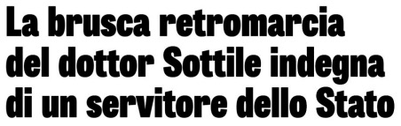 Per quanto Amato con la sua risposta di dissociazione dal titolo sparato da Repubblica come un missile -esso sì- sulla sua intervista avesse concesso alla Verità l’occasione di una polemica col giornale in qualche misura concorrente, il direttore Maurizio Belpietro ha preferito attaccare, anzi insultare il politico che d’altronde non ha mai goduto della sua simpatia, a dir poco. “Il dottor Sottile fa scarica barile”, si è titolato da solo Belpietro in prima pagina, infierendo all’interno con “la brusca retromarcia del dottor Sottile indegna di un servitore dello Stato”.