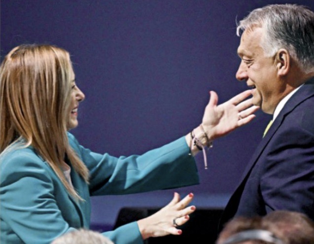 In nessuna delle pur numerose e promozionali anticipazioni del libro-intervista a Giorgia Meloni di Alessandro Sallusti, che si è procurato oggi la sfottente definizione di “direttore del Giorgiale” da parte di Marco Travaglio sul Fatto Quotidiano, avevo trovato la formula “Dio, Patria e Famiglia”. Che è invece rilanciata oggi, o comunque attribuita con titoli, vignette e quant’altro alla premier italiana dopo l’incontro a Budapest col presidente ungherese Viktor Orban. Una formula, virgolettata in prima pagina dalla Stampa, che ci riporta con la memoria anche al famoso grido in piazza della Meloni, con le vene gonfiate sul collo, durante la corsa a Palazzo Chigi: “Io sono Giorgia, sono una donna, sono una madre, sono cristiana”.