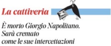 Proprio all’”ultimo Re” gridato nel titolo di prima pagina, perché non vi fossero fraintendimenti circa una conversione o comunque il riconoscimento di avere, per esempio, sostenuto in occasione della rielezione che Napolitano avesse tramato al Quirinale per ottenerla,, Il Fatto Quotidiano ha aggiunto la più perfida -credo- delle sue pur abituali “cattiverie” di prima pagina. “Sarà cremato come le sue intercettazioni”, vi si legge alludendo al ricorso dell’allora Capo dello Stato alla Corte Costituzionale che impedì praticamente alla Procura della Repubblica di Palermo di coinvolgerlo nel cervellotico processo sulle presunte trattative fra lo Stato e la mafia nella stagione delle stragi. Cervellotico, non per una mia capricciosa opinione ma per le conclusioni cui sarebbe giunta la stessa magistratura.