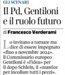 Sotto il titolo “Il Pd, Gentiloni e il ruolo futuro” il più diffuso giornale italiano informa che, per quanto lui dica di essere impegnato come commissario europeo “fino a novembre 2024”, quando potrebbe cambiare la giostra a Bruxelles sotto l’egida di un Parlamento rinnovato, Gentiloni “è l’idea per il dopo Schlein” al vertice del Pd. Che -sia detto per inciso- persino l’ex segretario Nicola Zingaretti ritiene destinato a non uscire dalle urne l’anno prossimo, nel voto europeo, sopra il 17 per cento. Rischiando quindi di essere sorpassato dai grillini di quel Conte indicato dallo stesso Zingaretti ancora al Nazareno come il maggiore, fortissimo e ancora altro “punto di riferimento dei progressisti” in Italia, sopra e sotto la sua Volturara Appula.
