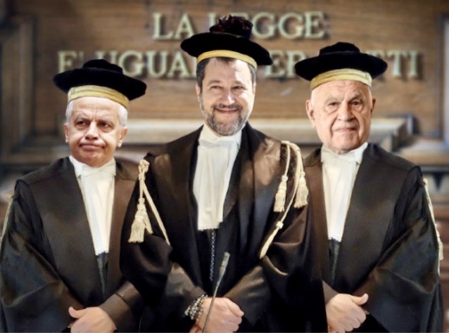 A dimostrazione della cattiva qualità del governo il direttore del Fatto nel fotomontaggio di copertina ha travestito da magistrati il guardasigilli Carlo Nordio, il vice presidente del Consiglio Matteo Salvini e il ministro dell’Interno Matteo Piantedosi, da sinistra a destra, titolando che “scrivono le leggi coi piedi e danno la colpa ai giudici” che, anziché applicarle, le disattendono. Infatti una giudice a Catania, Iolanda Apostolico, ha liberato 3 migranti tunisini dal campo di raccolta da dove avrebbero rischiato l’estradizione senza pagare una cauzione. “Scafisti in toga”, ha titolato Mario Sechi su Libero vedendo nella sentenza una “sfida dei giudici al governo”. “I magistrati ci riprovano”, ha titolato Alessandro Sallusti sul Giornale.