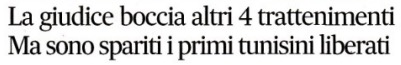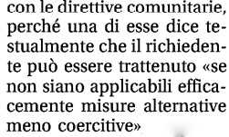 Nessun imbarazzo sembra essere stato avvertito dalla giudice neppure nel richiamo alle direttive europee che pure consentono il fermo, in attesa dell’esame delle richieste di asilo e protezione internazionale “se non sono applicabili efficacemente misure alternative meno coercitive”. Ebbene, questa mancanza di misure alternative è dimostrata dal fatto, non credo sconosciuto alla giudice, che i tre o quattro tunisini da lei liberati il 30 settembre si sono resi irreperibili, cioè sono scappati, prima che le loro richieste di asilo venissero respinte: in meno di dieci giorni.