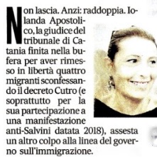Alcuni fantasiosi cronisti, per esempio sul Messaggero, a 14 anni dalla morte del conduttore Mike Bongiorno e a 64 dalla chiusura della sua famosissima trasmissione “Lascia o raddoppia”, hanno riaperto il concorso televisivo e iscritto d’ufficio la ormai famosa, pure lei, giudice Iolanda Apostolico. Che a Catania non ha per niente lasciato, dopo le polemiche sui suoi primi decreti giudiziari di liberazione di migranti tunisini irregolari trattenuti nel centro di raccolta di Pozzallo e sulla sua partecipazione, cinque anni fa, a dimostrazioni di piazza contro il governo. La signora ha raddoppiato i decreti disponendo la liberazione di altri quattro migranti, sempre tunisini, richiedenti asilo per essere fuggiti da problemi prevalentemente familiari. Su cui la magistrata ha riflettuto senza alcun imbarazzo, temo, per la loro sostanziale modestia rispetto a quelli che si immaginano quando si parla di gente che fugge da guerre, fame e persecuzioni.