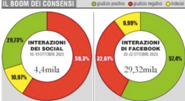 Grazie ad Antonio Ricci, alla sua “Striscia la notizia” di Mediaset e all’esibizionismo sconsiderato dell’ex compagno Andrea Giambruno, ora soltanto padre di sua figlia Ginevra, che non è poco, Gorgia Meloni può anche fare a meno di andare alle feste di partito e di governo, appena entrato nel suo secondo anno di vita, per conservare e aumentare il consenso. Non ci sono ancora sondaggi veri e propri, ma Il Giornale ha già lavorato sulle integrazioni di Facebook, come le ha chiamate, per sostenere che nel giro di un paio di giorni i giudizi sulla Meloni si sono rovesciati. Un inedito negativo del 59,3 per cento è diventato un verde positivo del 57,4.