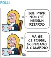 Non parliamo poi della fantasia e del sarcasmo dei vignettisti: per esempio, Stefano Rolli che sulla prima pagina del Secolo XIX ha imbarcato Delmastro sullo stesso frecciarossa intestato di recente al collega di partito e ministro Francesco Lollobrigida per la fermata straordinaria concessagli a Ciampino in considerazione del forte ritardo con cui viaggiava il convoglio.
