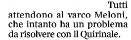 Il copione si è ripetuto nel racconto non solo di una premier assediata o scavalcata dal leader leghista, ma anche di un presidente della Repubblica sorpreso di assistere, al rientro da un suo viaggio all’estero, ad una tensione politica generale troppo forte, almeno per i suoi gusti. E quindi insofferente al Quirinale, tra richiami all’ordine o alla calma dietro le quinte di un silenzio ufficiale..