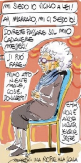 Mi spiace che a guastare, diciamo così, la festa della Scala a Liliana Segre si sia messo addirittura Il Foglio con una vignetta di prima pagina in cui la donna più autorevole, prestigiosa e lucida del Senato passa per una svanita che confonde fra voci, musiche e quant’altro. Ah, Giuliano, in che mani hai lasciato il tuo giornale.