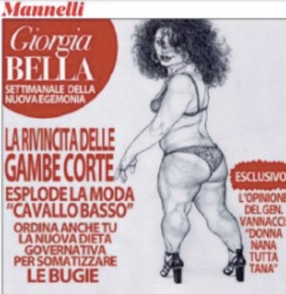 In un pur improbabile manicomio, se permettete, ci manderei anche il vignettista del Fatto Quotidiano Riccardo Mannelli per la sua volgare rappresentazione odierna della Meloni e delle sue “gambe corte” e grassottelle. Che compenserebbero il naso pinocchiescamente lungo della Schlein.