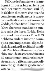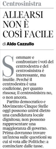 Reduce proprio dal salotto della Gruber, dove aveva sentito e visto di persona l’incotenibile felicità di Bersani, il buon Aldo Cazzullo ha scritto o ricordato nell’editoriale odierno del Corriere della Sera, che “allearsi non è facile” in quello che chiamiamo comunemente “centrosinistra”, senza il trattino originario dei governi di Aldo Moro fra il 1963 e il 1968, delimitati a destra e a sinistra con l‘esclusione, rispettivamente, dei liberali e dei comunisti.