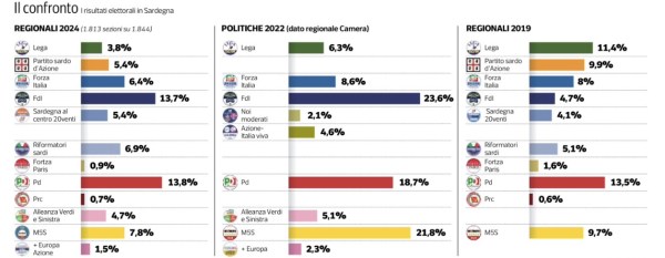 “Sommare e confrontare i voti del centrodestra e del centrosinistra è interessante, ma inutile. Perché il centrodestra -ha osservato Cazzullo- è una coalizione, per quanto rissosa, il centrosinistra no, o non ancora”. E chissà se e quando potrà diventarlo con le ambizioni che coltiva Conte alla luce del sole, senza nasconderne nessuna, anche se qualcuno nel Pd finge ancora di non sentire e di non capire. Il presidente Stefano Bonaccini, complimentatosi a sorpresa con la Schlein per il risultato sardo, si è affrettato a correggersi avvertendo che Conte “non basta” per fare l’alleanza o il campo dell’alternativa nei sogni di Bersani.