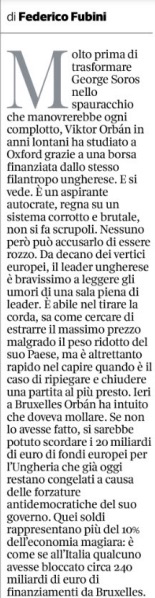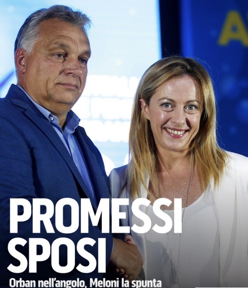 A qualcosa di utile dunque può servire, oom’è appena avvenuto anche al vertice europeo, il rapporto tra Giorgia Meloni e Viktor Orban tanto temuto e disprezzato a Roma e dintorni: i “Promessi sposi” sfottuti da Matte Renzi sul suo Riformista, pur riconoscendo che l’ungherese è rimasto “nell’angolo” e l’altra l’ha “spuntata”. Questo “amore”, come l’ha chiamato sfottendo anche Stefano Rollli nella vignetta del Secolo XIX, non è solo “una catena”, non so se più per l’uno o per l’altra, per l’ungherese o per l’italiana. Intanto grazie all’intesa fra i due premier L’Europa si è “ricompattata” , come ha titolato in apertura Avvenire, il giornale dei vescovi italiani .