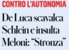 Questo abuso non è di un governo al quale si attribui peraltro la colpa un anno e mezzo fa di nascere nel centenario della marcia fascista su Roma, e perciò fascista anch’esso, ma di un po’ tutte le componenti della variegata opposizione, a cominciare dalla maggiore, per ora, Già, perché oltre a non dissociarsi, almeno sino al momento in cui scrivo, dalla “stronza” data dal suo collega di partito ad una Meloni che non più tardi di qualche giorno fa le ha permesso con l’astensione della maggioranza l’appovazione alla Camera di una mozione su Gaza che fa accapponare la pelle per una certa miscela di demagogia e disinvoltura, la segretaria del Pd ha condiviso tutte le proteste di De Luca. “La patriota divide l’Italia” gridava un titolo di Repubblica apposto in prima pagina ieri su ‘un’intervista della stessa Schlein.