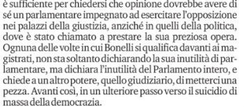 Mattia si è giustamente chiesto “che opinione dovrebbe avere di sé un parlamentare impegnato ad esercitare l’opposizione nei palazzi di giustizia anzichè in quelli della politica, dove è stato chiamato a prestare la sua preziosa opera”. Preziosa, giusto per amicizia di Mattia, dalla quale sono per fortuna esente.