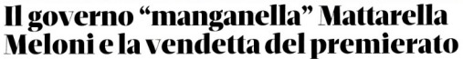 “Meloni, il gelo del Quirinale”, grida infatti su tutta la prima pagina il quotidiano che ormai guida l’opposizione in concorrenza con Giuseppe Conte, che pure è molto più avanti del Pd di Elly Schlein nelle ostilità al governo di centrodestra, o di destra-centro, saldo in carica nonostante il venticello della sconfitta di misura nelle elezioni regionali sarde di domenica scorsa.