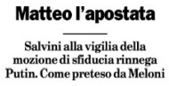 Oltre a lavorare al suo Ministero per la costruzione del ponte sullo stretto di Messina -di cui è convinto di poter aprire il cantiere in quest’anno alla faccia delle opposizioni, che per complicargli la vita si sono rivolte anche alla magistratura, già indaffarata con lui per sequestro di persone- Matteo Salvini ha confessato alla “belva” Francesca Fagnani, nella quasi omonima trasmissione di Rai 2, di “stare costruendo un’amicizia” con Giorgia Meloni. Della quale è uno dei due vice presidenti del Consiglio, decisamente più irrequieto e imprevedibile dell’altro, che è il forzista Antonio Tajani. Ma le ha appena fatto il piacere di chiudere pubblicamente lo scomodo rapporto con Putin, guadagnandosi dal Foglio la qualifica di “Matteo l’apostata”.