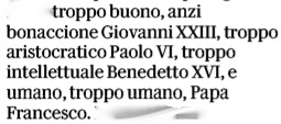Potrei paragonare il Papa ad un utopistico ministro della Giustizia -una volta anche di Grazia, oltre che di Giustizia- che non vede l’ora di svuotare le carceri, visto anche che sono sovraffollate, o di chiuderle, o di abbatterle senza neppure farne dei musei a memoria della cattiveria di chi vi era finito dentro o ve li aveva mandati persino da innocenti. Ma riconosco, per quel pò di fede che ancora rivendico da bestemmiatore occasionale, che sarebbe riduttivo per un Pontefice essere assimilato ad un Guardasigilli, anche se di nostro Signore, e non della nostra premier, signora Giorgia Meloni, com’è più modestamente Carlo Nordio. Che a carceri, non avendone a sufficienza per sistemarvi meno scomodamente quelli che vi mandano i giudici per scontare le condanne definitive, o vi spingono i pubblici ministeri già durante le indagini, in attesa anche solo di un rinvio a giudizio, cerca di trasformare un po’ di caserme abbandonate.