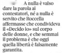 Il mio amico Paolo Mieli deve essere rimasto sorpreso leggendo oggi la cronaca commentata del fattaccio scritta da Roberto Gressi sul “suo” Corriere, e pubblicata come editoriale: “A nulla è valso dare la parola ai contestatori, né a nulla è servito che Roccella affermasse che non condivideva il “decido io” sul corpo delle donne, che semmai il problema è che oggi quella libertà è falsamente garantita”. La gazzarra adolescenziale, chiamiamola così, è finita solo quando la ministra, che peraltro aveva aspettato un paio d’ore per cercare di parlare, se n’è andata togliendo il disturbo.