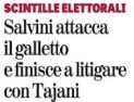 “Il galletto”, ha definito Macron forse ancora più spregiativamente, nella sua ironia, un giornale – La Verità- particolarmente simpatizzante del vice presidente del Consiglio italiano e leader della Lega. Che si è proposto -fra i vari cantieri allestiti da ministro delle Infrastrutture- di sfuggire al sorpasso tentato dal partito forzista di Antonio Tajani all’interno del centrodestra.