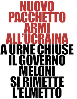 Sarà così -presumo- anche nella preparazione confermata dallo stesso Crosetto del nuovo decreto di nuove forniture militari all’Ucraina. Contro il quale è già insorto il giornale dichiaratamente pentastellato La Notizia con questo titolo molto contiano: “Nuovo pacchetto armi all’Ucraina. A urne chiuse il governo Meloni si rimette l’elmetto”.