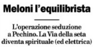 Giorgia Meloni, diavola di una donna e di una premier, dalla lontana Cina dove si è avventurata con la figlia avrebbe dunque compiuto l’imprudenza, rimproveratale immediatamente dagli avversari, di irrompere nelle cronache belliche che sconvolgono il mondo per scatenare la sua guerra, per quanto solo di carta, contro tre giornali italiani, in particolare, che ce l’avrebbero con lei, portatori di interessi non solo cartacei. Sarebbero la Repubblica, che ha risposto al fuoco sparando sull’attacco della Meloni; Domani, il quotidiano di Carlo De Benedetti , che ha risposto rimproverandole di avere violato la rete di protezione appena stesa dal Quirinale sul giornalismo, e il Fatto Quotidiano. Tutti accomunati dalla premier nella “distorsione” di un dossier della Commissione Europea sullo stato di diritto dei paesi dell’Unione, fra i quali l’Italia sarebbe fra le peggiori.