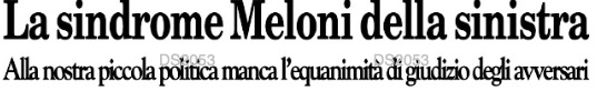 E’ una sindrome che proprio oggi il vignettista Stefano Rolli sul Secolo XIX rilancia precisando che quella della Meloni è “la camicia nera” del fascismo, non “la maglia nera dei salari” rimproveratale da un critico più terra terra reduce dalla lettura di un giornale.