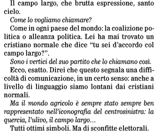 Vincenzo De Luca, dal canto suo, anche lui critico col governo, sostenendone comunque il designato alla nuova Commissione europea, ha contestato già nel nome il progetto di alternativa coltivato dalla Schlein. “Il campo largo, che brutta espressione”, ha detto. E quando Cerasa gli ha ricordato i nomi anch’essi campestri di altre alleanze a sinistra, come l’Ulivo dei primi tempi di Prodi, lui lo ha interrotto dicendo: “Tutti ottimi simboli. Ma di sconfitte elettorali”, o di successi effimeri, con governi di breve durata e/o scioglimenti anticipati delle Camere.